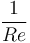 The Reynolds number is defined as Re = \frac{\rho UL}{\mu}. This nondimensional number describes the relative importance of the inertial forces to the viscous forces in the flow, as described in this blog post.