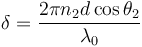 As illustrated below, we can imagine a single ray entering a narrow region of refractive index n_2, sandwiched between media with indices n_1 and n_3. Let r_{12} indicate the reflection coefficient at the interface between domains 1 and 2, while r_{23} indicates the reflection coefficient at the boundary between domains 2 and 3.
