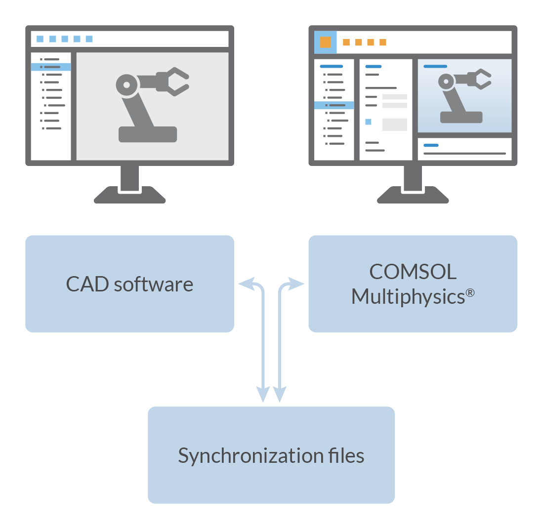 Synchronization files are exported from the CAD software and imported into COMSOL Multiphysics®.