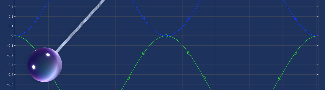A simulation app based on a COMSOL model can serve as a predictive tool, allowing you to explore how different design parameters, such as pendulum length or mass, affect the results before performing the actual experiment. To build a model of a simple pendulum, we’ll use the Multibody Dynamics interface, available in the Multibody Dynamics Module add-on product, as shown in this example model of a double pendulum. In the model the Events interface is used to track the number of oscillations in the simulation using a Discrete State variable called count. The process occurs in two stages, represented by two implicit events. When the bob’s velocity in the x direction becomes negative, count is incremented by a positive fractional value less than one. When the x-component of the velocity becomes positive again, count is rounded up to the next integer using the ceiling function. A stop condition is implemented as another implicit event that is triggered when count reaches the specified number of oscillations. Once the simulation terminates, the total simulation time (Tsim) and the number of oscillations (N) are used to calculate pi according to the equation