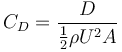 C_D = \dfrac{D}{\frac{1}{2}\rho U^2 A}