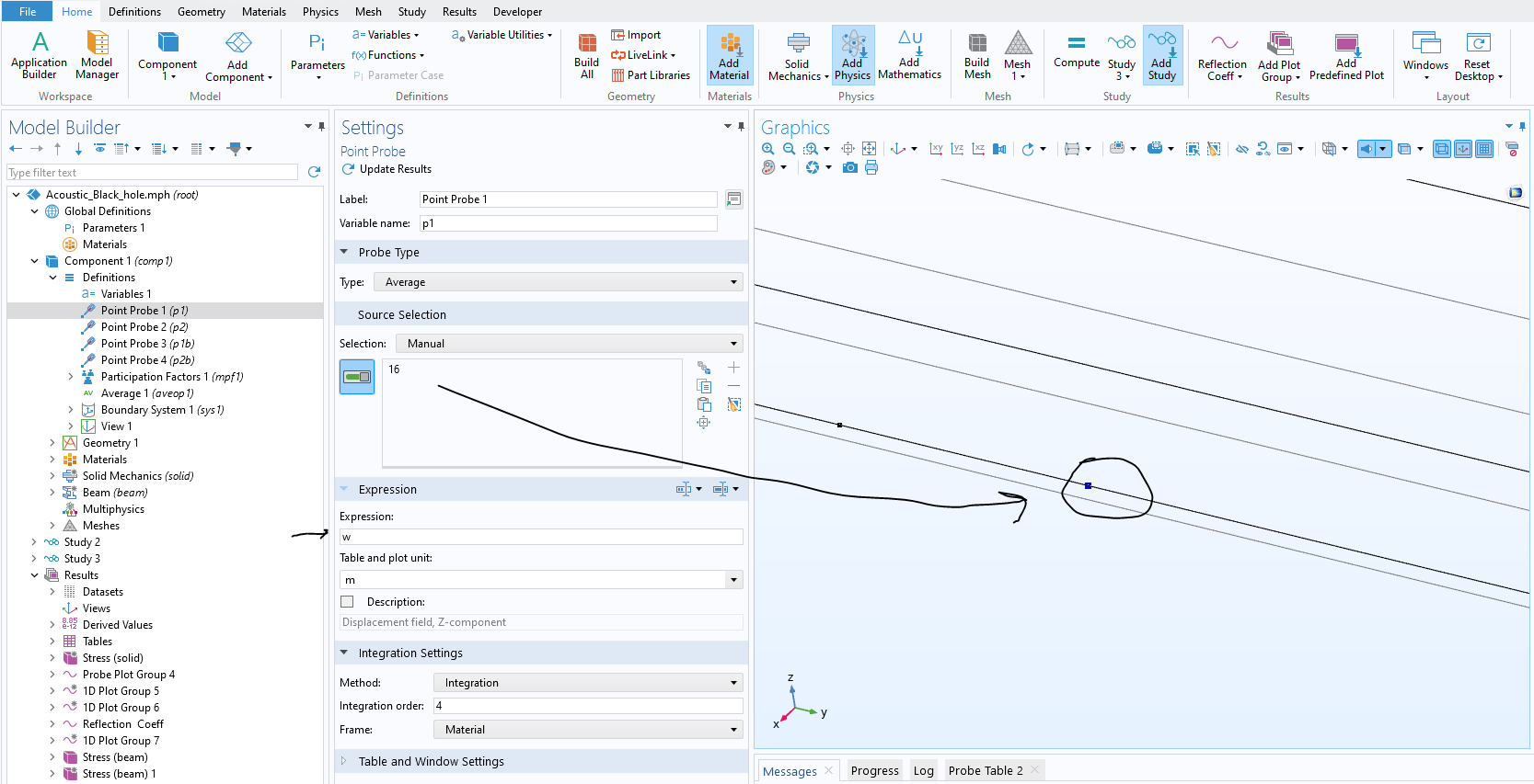 Im trying to model an acoustic black hole beam with a continuously varying young's modulus. I've added the elastic wedge with varying Youngs modulus and the uniform plate as well as a perfectly matched layer at the left end to model the beam as semi-infinite. What I'm struggling with is applying an excitation of flexural waves at the left end of the uniform plate and calculating the reflection coefficient for this excitation over a frequency range. I have no idea how to do this since Im new to COMSOL and if anybody knows what this error "Automatic scaled regions cannot treat selections without exterior and interior boundaries. - Feature: Perfectly Matched Layer 1 (pml1)" means and how to get rid of it please help me :). Ive attatched my COMSOL document on this post. Thanks.