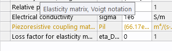 I am currently trying to use Graphene for designing piezoresistive pressure sensor and as I saw in many of the previous threads the 'sigma0' , 'nd' terms pose a problem again..I could not understand how to properly solve this problem. The piezoresistive matrix segment turns yellow. Do I need to look these values up or do I need to do something else? Help.