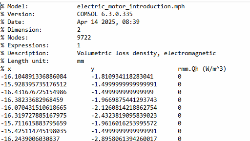 Am I correct in assuming that this value represents an average over all computed time steps? When I look at the dataset from the "Time to Frequency Losses" study and export the rmm.Qh value, I only see X, Y, rmm.Qh (see attachment). Which leads me to conclude that rmm.Qh is only a one-dimensional vector. This leads me to believe that the iron losses calculated in this study are not time-dependent—is that correct?
