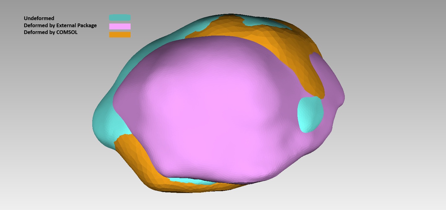 I'm trying to use the deformed geometry and its corresponding stress and strain distributions, calculated by another package, in COMSOL as an input to another Physics. I read through some of the previous posts and noticed that I need to use the undeformed geometry, import the nodal displacements as interpolation functions, and then use these nodal displacements as a Prescribed Displacement to achieve the intended effect (recalculate the stress and strain fields). However, the prescribed displacement (imposed on the domain) does not even recreate the same deformation, let alone the same stress or strain distribution (I'm using the same material behavior as the external software). Shouldn't the prescribed displacement recreate the same deformation at least?