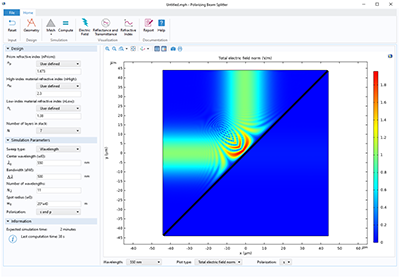 A Gaussian beam is incident on a 45-degree thin-film stack embedded in glass material prisms. The thin-film stack is designed from alternating high and low refractive index materials. The wave will be refracted at the Brewster angle at each internal interface. Thus, mainly p-polarized ... Read More