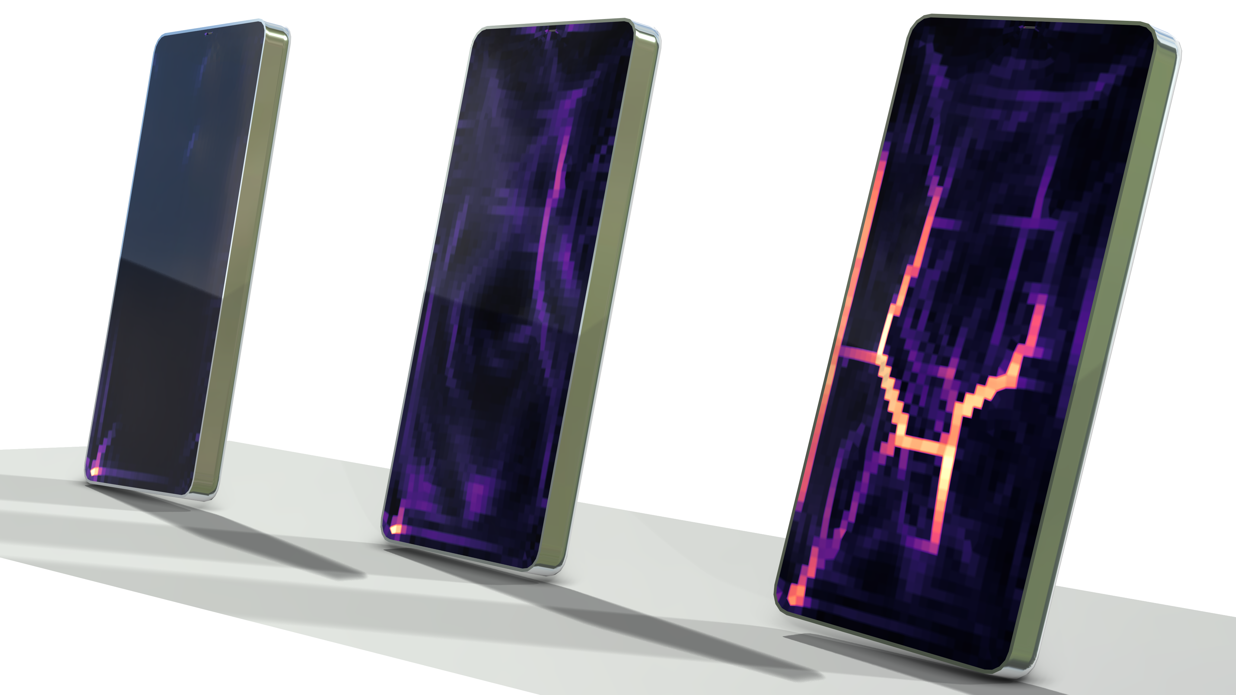 Simulation of a cell phone drop test. The impact causes cracks to propagate in the glass.